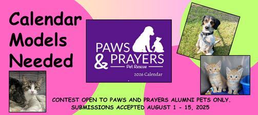 2026 Paws and Prayers Alumni Pet Calendar Model Contest!